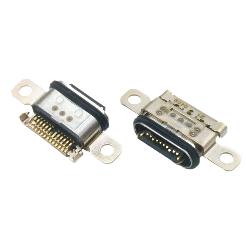 TYPE C 24P母座 板上雙貼SMT 舍片外漏 帶雙耳螺絲孔 CH=1.6MM L=7.55MM(華碩ROG2、3、5代游戲手機(jī)尾插)